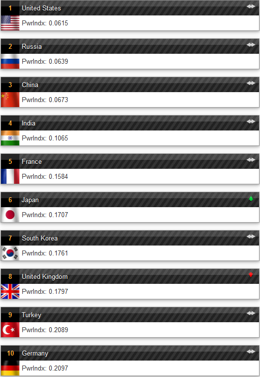 全球軍力指數2019年數據 圖片來源:全球軍力指數(Global Fire Power index)官網