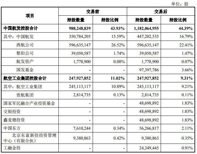 另外,航空工業集團的持股比例略微下降,合計由交易前的11.02%下降至9.31%;國際軍民融合產業投資基金、交銀投資、鑫麥穗投資、工融金投為新進股東,交易完成持有的上市公司的股份分別為1.83%、1.83%、1.83%和0.91%。