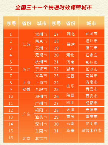 申通則表示,將對31個城市作出時效承諾,主要在江蘇、浙江、廣東。