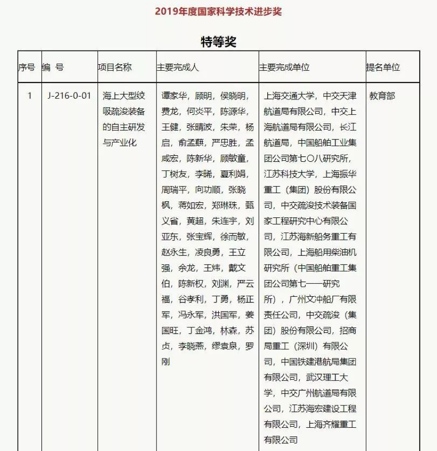 在近日頒發的“2019年度國家科學技術進步獎”的特等獎榜單上,《海上大型絞吸疏浚裝備的自主研發與產業化》與《長江三峽樞紐工程》兩個項目獲得殊榮。