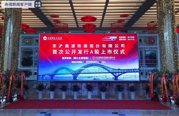 央視新聞客户端消息,1月16日上午,京滬高速鐵路股份有限公司在上海證券交易所主板掛牌上市,股票名稱為“京滬高鐵”,代碼為601816,每股發行價為4.88元,累計發行62.86億股,佔總股本12.8%。這標誌着“中國高鐵第一股”成功登陸A股,鐵路股份制改造取得重要進展。