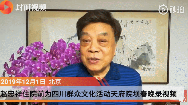 據封面視頻1月16日報道,趙忠祥住院前最後一次出鏡,是2019年12月1日為四川羣眾文化活動天府院壩春晚錄製祝福視頻。