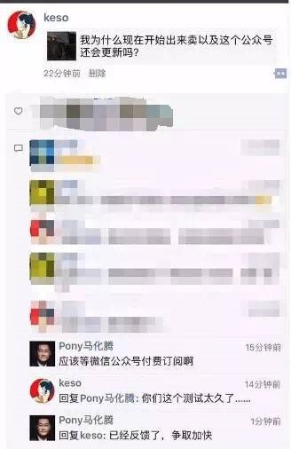 微信要做付費閲讀功能的傳言起源於2017年,源頭是馬化騰在IT媒體人keso的朋友圈下的留言。