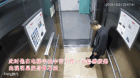 當天夜裏十點多,楊醫生結束加班準備回家,進入電梯後他不停打哈欠,十分疲勞。