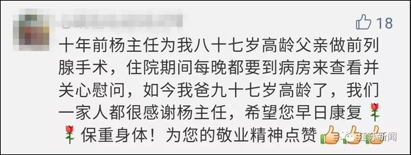 科室工作人員介紹楊醫生除了週末幾乎都是科室為家,晚上11點回家是常事,上次回家路上摔倒後,科室留下了家裏的電話預防突發。