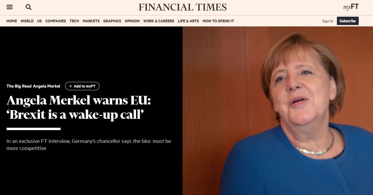 《金融時報》:默克爾警告歐盟:英國脱歐是警鐘