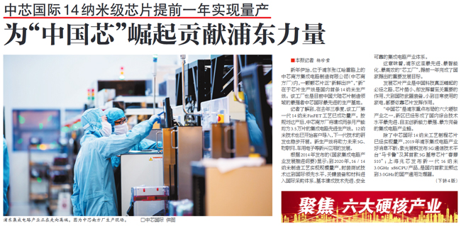 中芯國際14納米級芯片提前一年實現量產 截圖自《浦東時報》