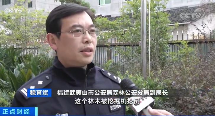 福建武夷山市公安局森林公安分局副局長 魏育斌:我們已經初步瞭解過,這個林木被挖掘機挖倒,沒有經過林業主管部門審批,是擅自開墾林地的行為。