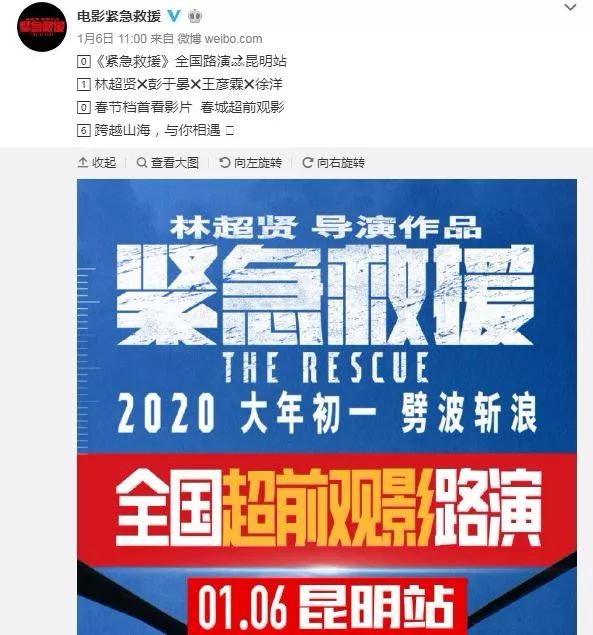 《緊急救援》開啓超前觀影。 來源: 微博截圖