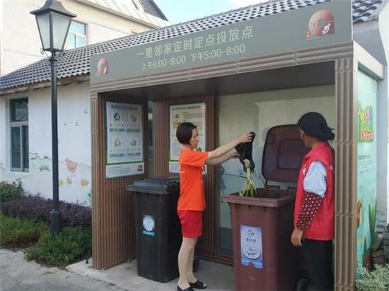崇明區魯嶼村村民定時定點投放垃圾。 崇明區委宣傳部供圖