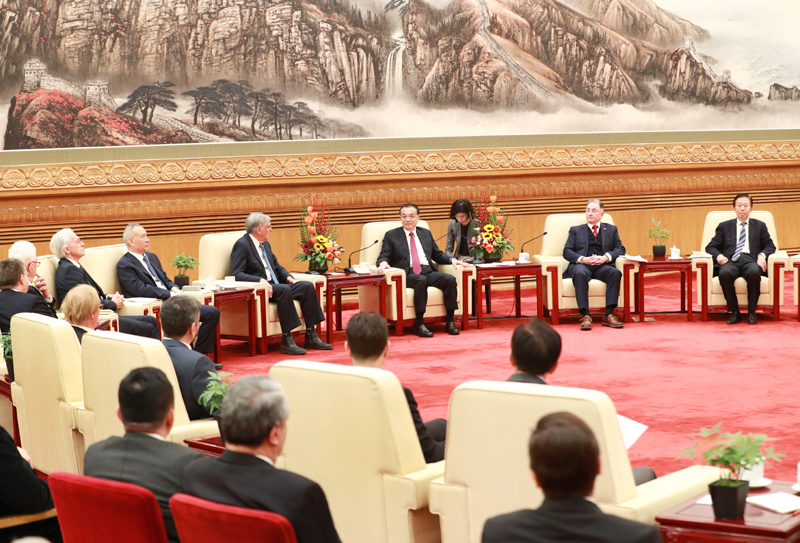 李克強表示:“中國發展需要和平的國際環境。中國將堅定不移維護世界和平,堅持多邊主義,維護自由和公平貿易,在進一步擴大開放中同世界各國開展合作,實現互利共贏。”