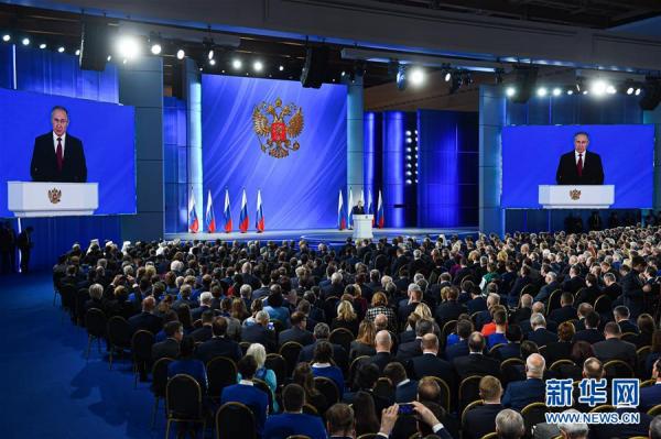 1月15日,在俄羅斯首都莫斯科,俄總統普京向議會上下兩院發表國情諮文。 新華社發(葉甫蓋尼·西尼岑攝)