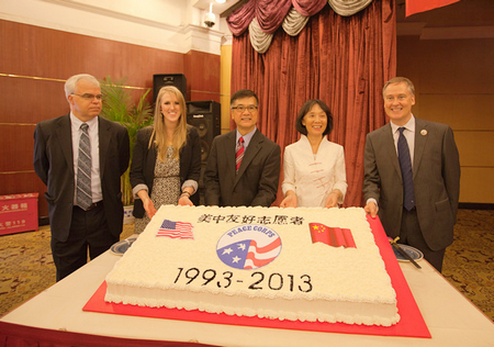 美中友好志願者項目第19批志願者就職儀式暨在華實施20週年活動於2013年8月29日在成都舉行。美國駐華大使駱家輝、中國教育國際交流協會副秘書長楊孟出席儀式並致辭