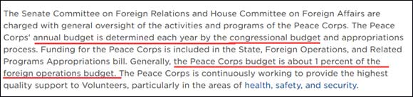 這筆錢,由美國的參議院和眾議院的外交委員會(United States Senate Committee on Foreign Relations)和外事委員會調撥,官方網站查詢,該機構每年的年度預算佔美國外事總預算的1%,看起來他們所食公帑並不多,但和平隊“極高明而道中庸”,項目總負責人是總統直接委派,俸低但品不低。