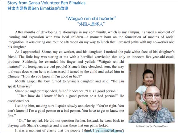 在華和平隊的課堂教育內容:外國人是壞人嗎?