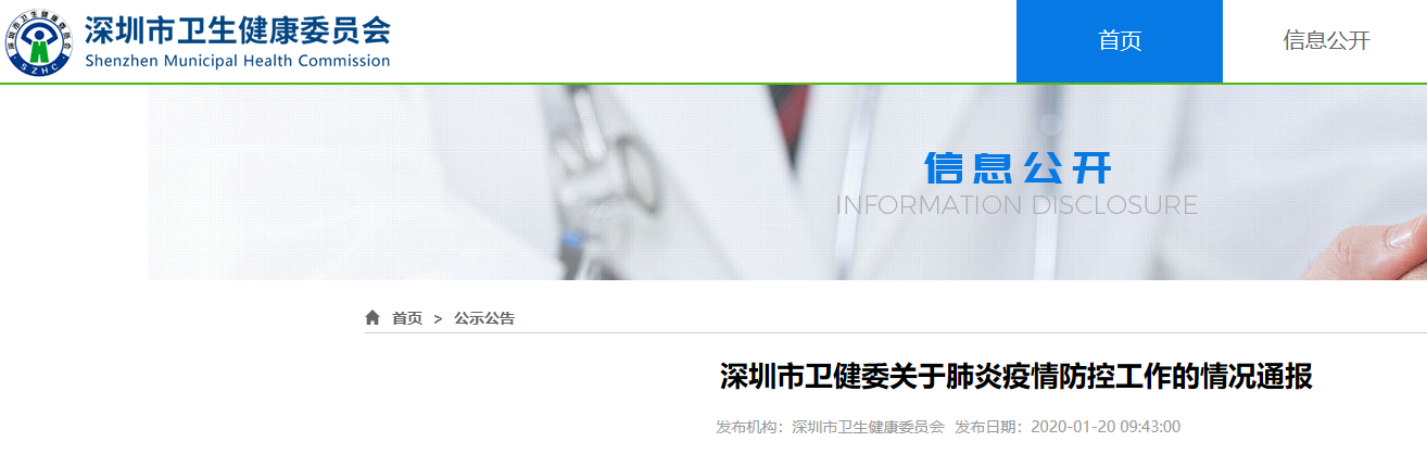 發佈機構:深圳市衞生健康委員會發布日期:2020-01-20 09:43:00