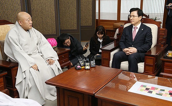 2019年 曹溪宗僧侶代表與黃教安 圖自韓媒(下同)