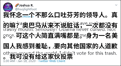 對此,社交媒體上有網友直呼“尷尬”、“噁心”,“好懷念不會口吐髒字的總統”。還有人揪特朗普的字眼:“別活在夢裏,你已經被彈劾啦!”