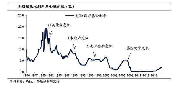 在過去四十年當中,世界經濟經歷了拉美債務危機、日本地產泡沫、東南亞金融危機,以及美國的次貸危機,如圖1所示。當下的中國金融也面臨很多問題,如金融的過快發展、脱實向虛等。但是從中國金融發展的總體走勢來看,沒有發生大的問題,可以説是相當穩定的。但是,在回顧中國經濟改革發展成果的時候,大家通常很自豪的談論中國經濟已經是世界第二大經濟體,但提及金融的時候很難有一種強有力的聲音來肯定中國金融的發展成就。是否,存在一個悖論?那麼,我們該如何評價中國的金融發展呢?我想就這個問題談談我的分析。