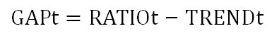 第二步,利用HP濾波法估計信貸比率的長期趨勢(TRENDt),進而得到原比值與長期趨勢值的差值,即信貸缺口(GAPt)。