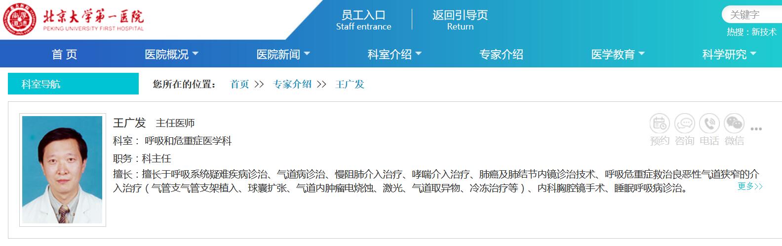 北大一院呼吸科主任王廣發疑似新型冠狀病毒感染肺炎 在隔離治療中