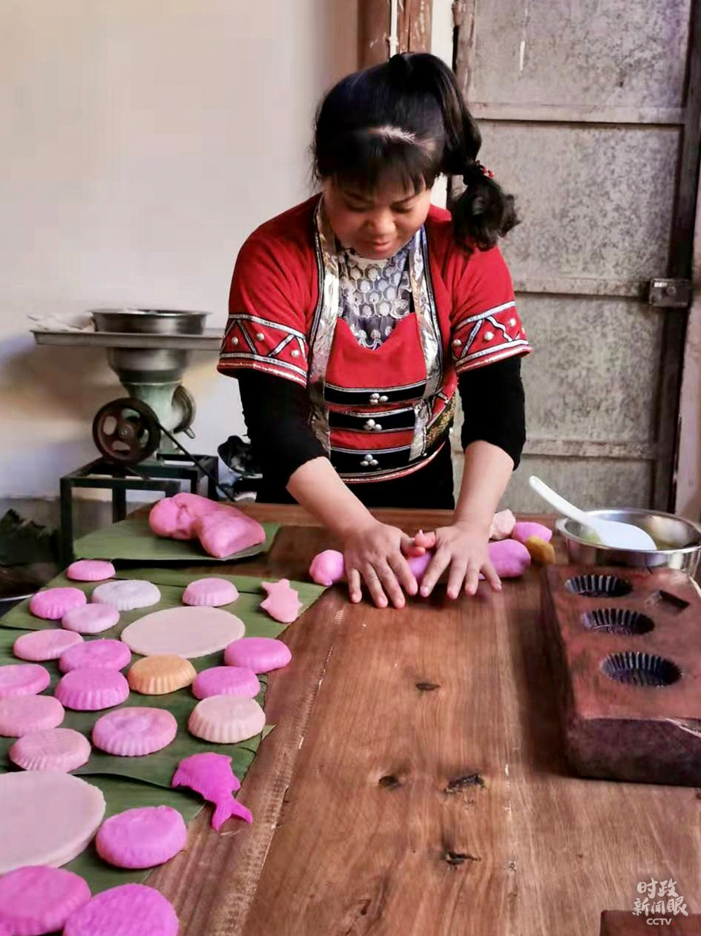 △李發順一家正在製作節日傳統食品大米粑粑。(總枱央視記者史偉、央廣記者馬喆拍攝)