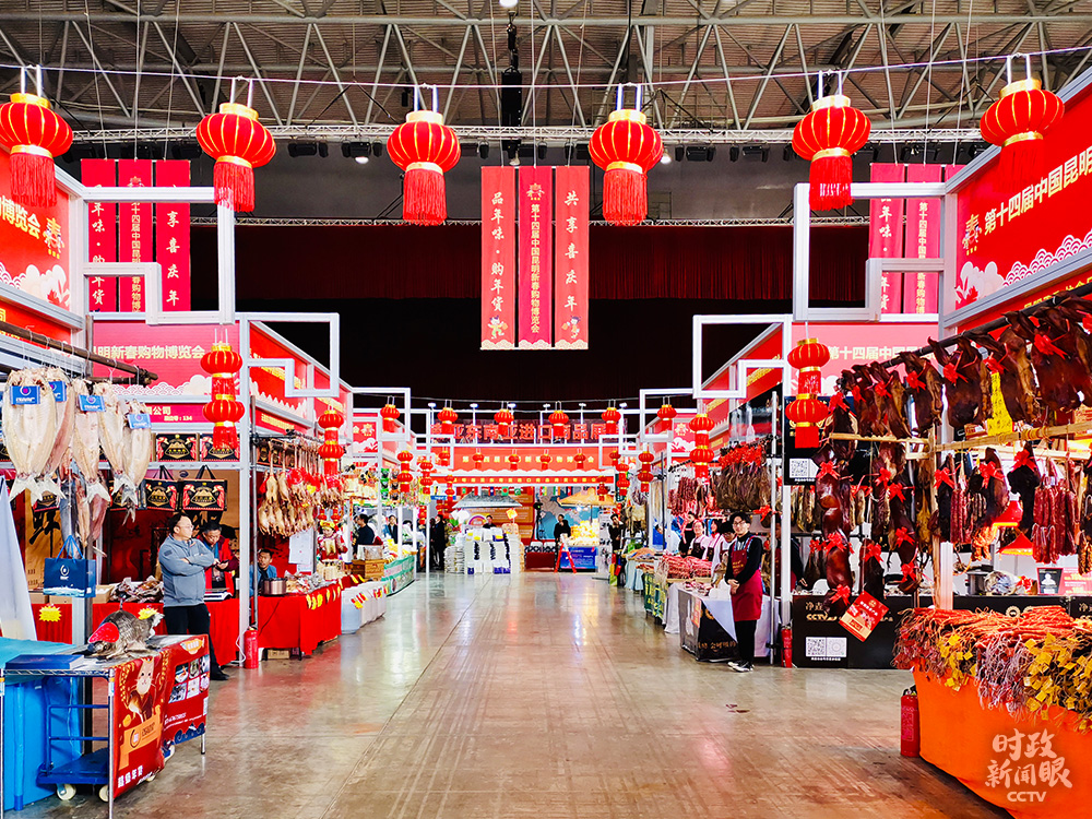 △在昆明,習近平還考察了博覽會年貨街。他説,“菜籃子”“米袋子”“果盤子”,都是事關民生的大事。(總枱央視記者楊立峯拍攝)