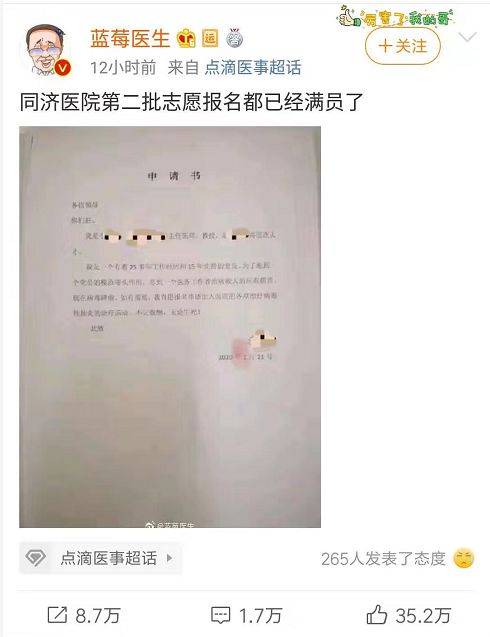 同濟醫院第二批志願報名已滿員,申請書上“不記報酬,無論生死! ”簡單的八個字讓人淚目。