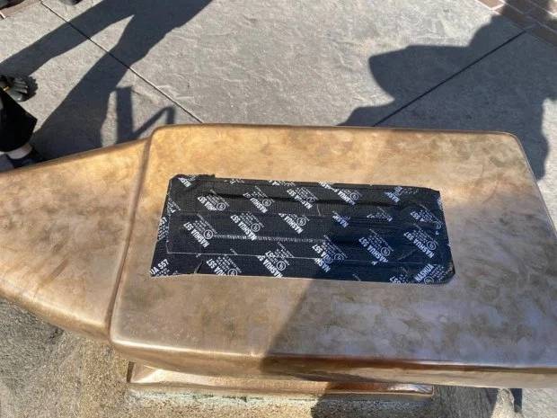 園方用黑色膠帶封住拔劍口(每日郵報)