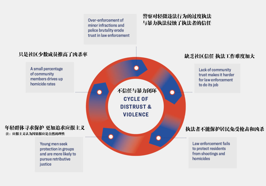 對於民與警之間不信任的這一複雜的現象,美國許多執法部門非但不承認,反而還會相信許多城市是“謀殺之都”的觀點,即這些城市的居民被指責對槍支暴力滿不在乎,並且不願幫助警方追究槍手的責任。