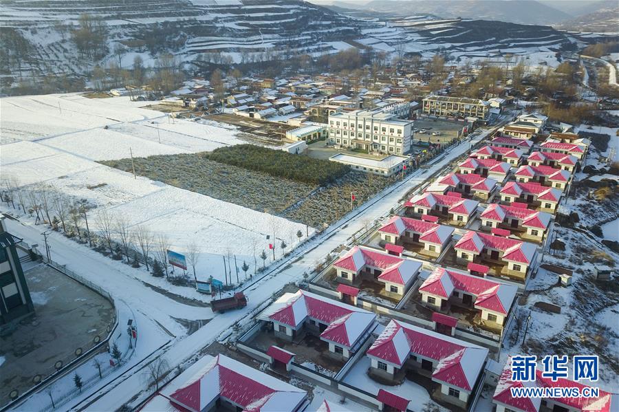這是2019年12月18日拍攝的甘肅省定西市渭源縣元古堆村雪景(無人機照片)。新華社記者範培珅攝