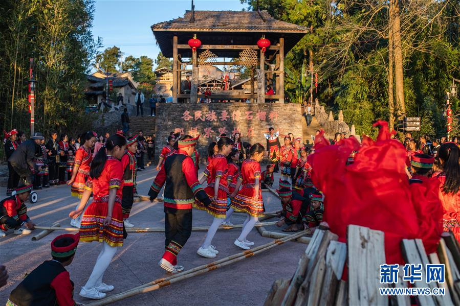 在騰衝市清水鄉三家村中寨司莫拉佤族村廣場,村民在跳舞(1月19日攝)。新華社記者胡超攝