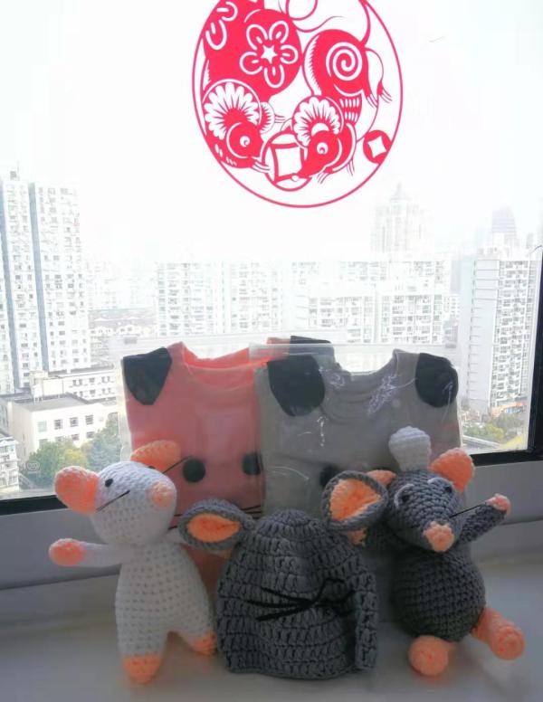 早在鼠寶寶出生前,醫院工作人員就購置了20套鼠寶寶的服裝,灰色的連體衣,連體衣上還繡着俏皮靈動的老鼠鼻子和眼睛,再加帶着兩個耳朵的針織帽,這是男寶寶的一身套裝,而女寶寶的服裝則是粉色系衣服,加上白色帽子。