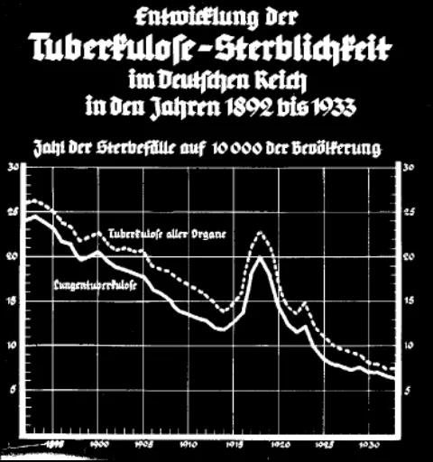 德意志第二帝國末期和魏瑪時期的德國,除了必須面對政治經濟上的亂局,還遭受着肺結核疫情經年累月的威脅。據統計,1933年死於肺結核的德國人有約5萬,另有結核病患者約20萬。