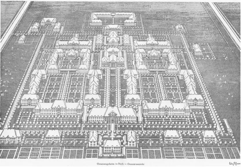 説是醫院,其實是柏林境內的一座醫院“鎮”,在著名建築師Ludwig Hoffmann長期主持下,到1929年,它發展成為擁有5500張牀位的龐然大物。