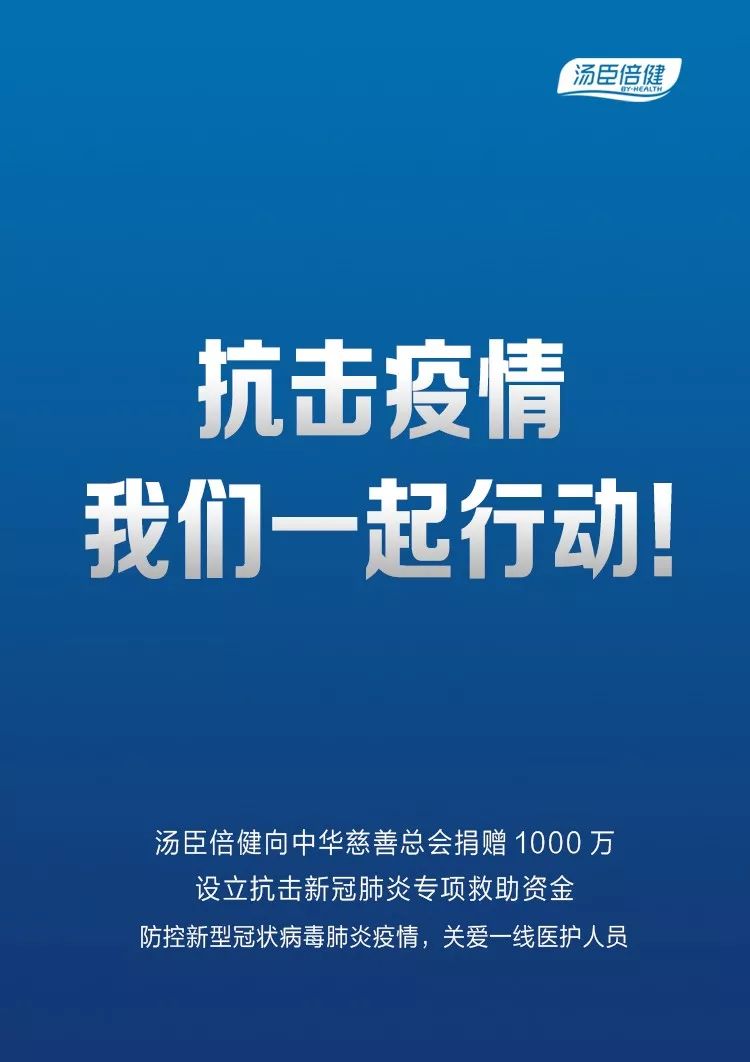 1月27日,據湯臣倍健官方微信公號,該公司通過中華慈善總會捐款1000萬元,在其機構內下設“抗擊新冠肺炎專項救助資金”,用於抗擊新冠肺炎疫情一線醫護人員的救助和獎勵以及醫療防護物資採購。