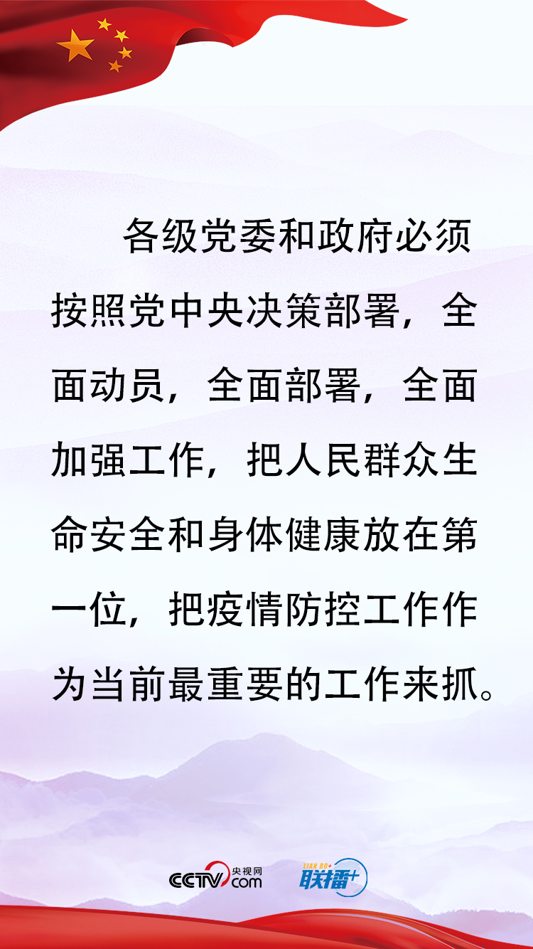 ·湖北省和武漢市疫情防控事關全局。湖北省要把疫情防控工作作為當前頭等大事,採取更嚴格的措施,內防擴散、外防輸出,對所有患者進行集中隔離救治,對所有密切接觸人員採取居家醫學管理,對進出武漢人員實行嚴格管控,堅決防止疫情擴散。