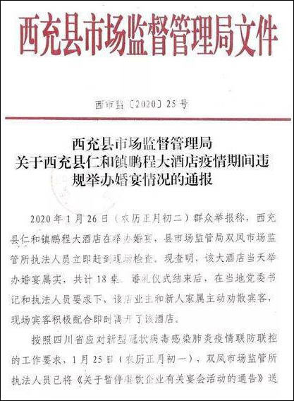 1月27日,西充縣市場監督管理局通報了一起疫情期間違規舉辦婚宴的情況。這家酒店為什麼還在承辦婚宴,這對新人為什麼還邀請來這麼多客人,鎮黨委書記是怎樣勸散婚宴的呢?