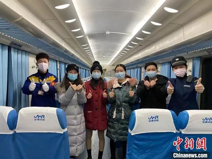 資料圖:列車工作人員和前往武漢的醫務人員。 金温鐵路供圖