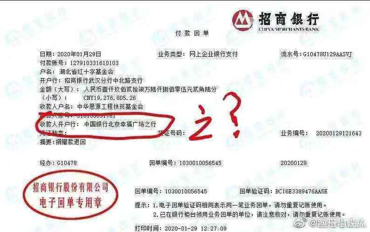 1月30日中午,湖北省紅十字基金會官方微博發佈消息稱,我們與中華思源工程扶貧基金會一直在溝通執行方案,由於暫時沒有達成執行意向,故先退回了撥付資金。我們後期也會進一步與思源溝通,待達成一致執行方案後再行下一步工作。