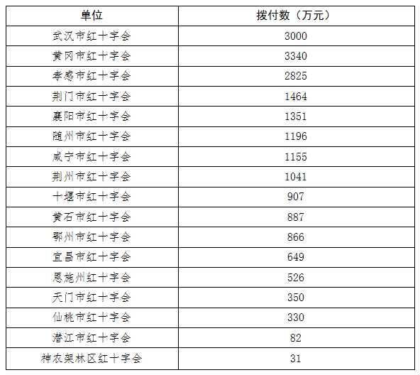 根據湖北省新型冠狀病毒感染的肺炎防控指揮部社會捐贈組的要求,現將由省防控指揮部統一調配使用的省紅十字會非定向社會捐贈款第一批2億元資金撥付情況公告如下: