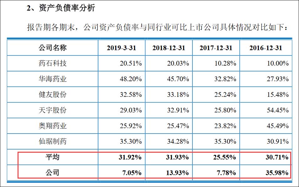 博瑞醫藥資產負債率與同行業可比上市公司具體情況對比