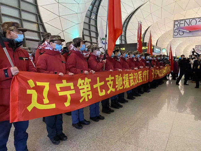 2月12日出發的遼寧醫護人員分為兩支醫療隊,其中一支32人包機飛赴武漢,要去武漢大學人民醫院支援最艱難的重症患者救治。另一支83人的醫療隊乘另一架包機,直飛遼寧省對口支援的襄陽,支援醫療救治工作。