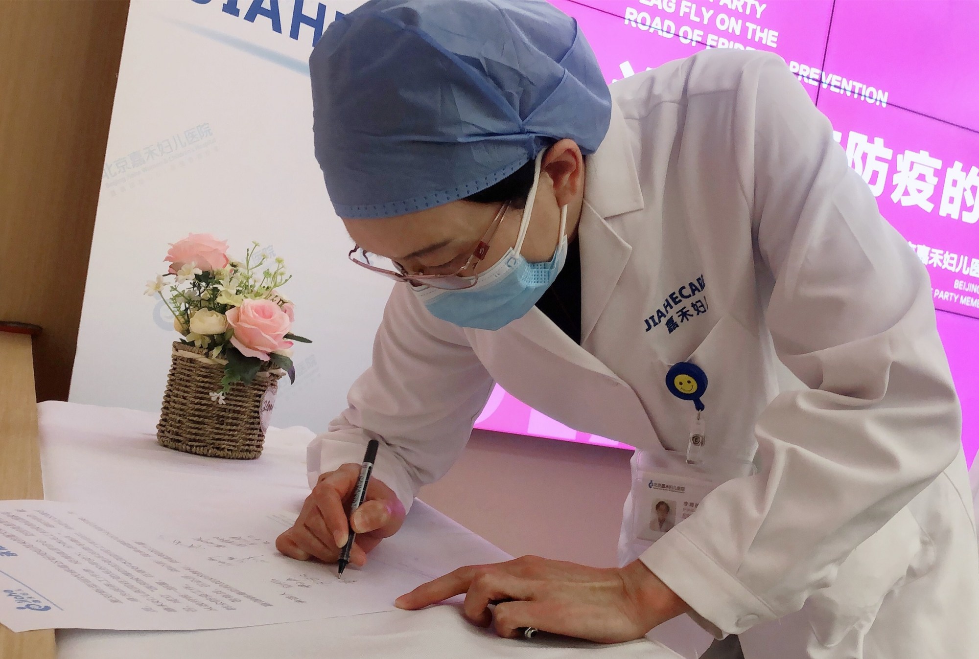 危難當前,作為一名黨員,能做的就是有一分熱,發一分光。北京嘉禾婦兒醫院黨支部響應豐台區委的號召,成立“疫情防控黨員志願先鋒隊”,李海苗主任第一個報名,她在承諾書上鄭重地簽上自己的名字:“如果國家需要我去武漢、去前線,我一定義無反顧,衝在最前。如果國家讓我待命,我就時刻準備,堅守本職工作,守護好每一位母親、每一個嬰兒的健康,帶給羣眾最大的安全與安心,這就是對抗擊疫情最大的貢獻。”