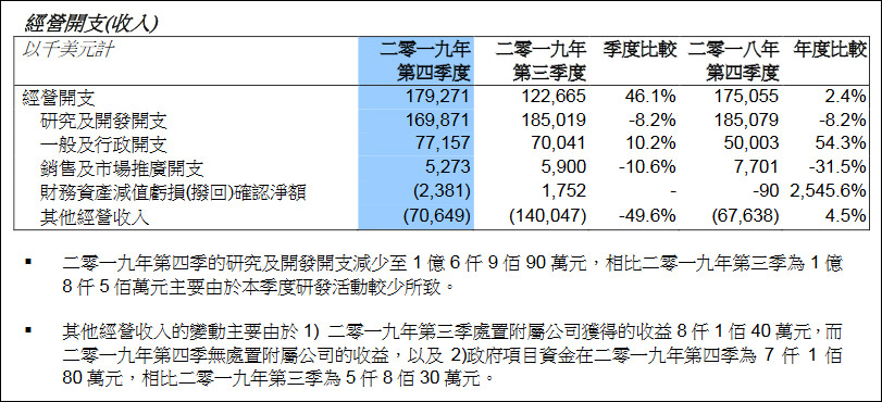 另外,中芯國際2019年第四季度研發開支為1.7億美元,環比同比均下降8.2%。財報中稱,這是由於主要由於當季研發活動較少所致。