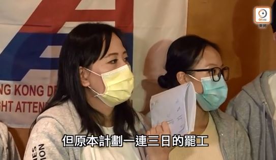 一塊湊熱鬧的還有“港龍航空空勤人員協會”,以罷工威脅航空公司全面停飛往返內地航班。