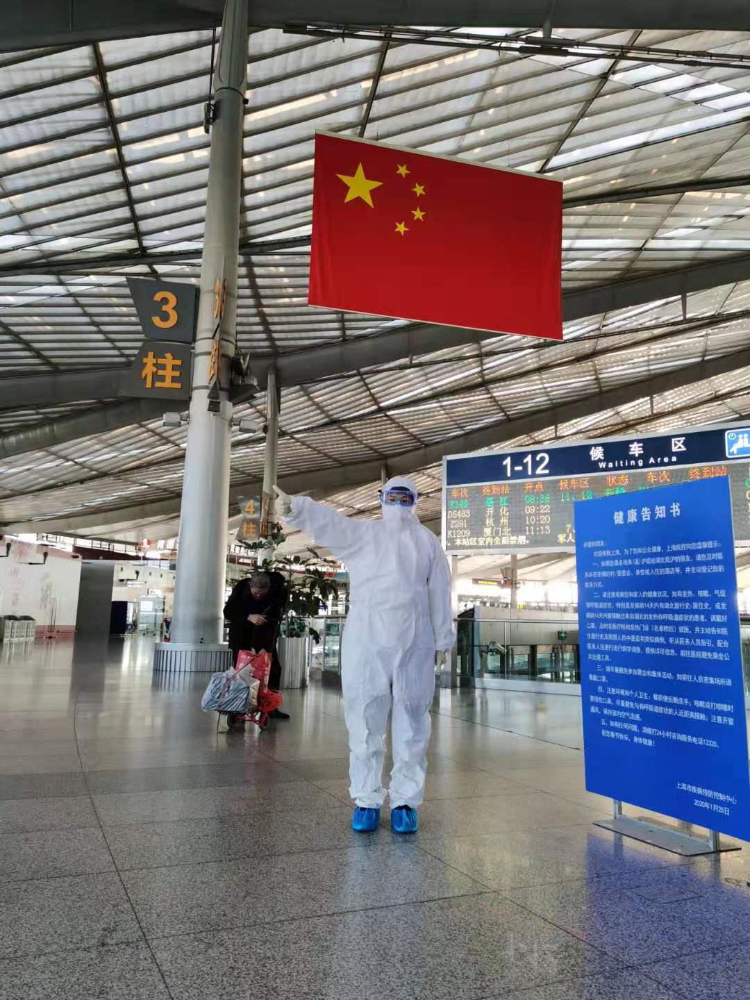 陳政博已投入到發熱門診的一線工作中,辛奇遙則身穿防護服,在車站對來滬人員進行檢疫,對體温高的旅客進行流行病調查。