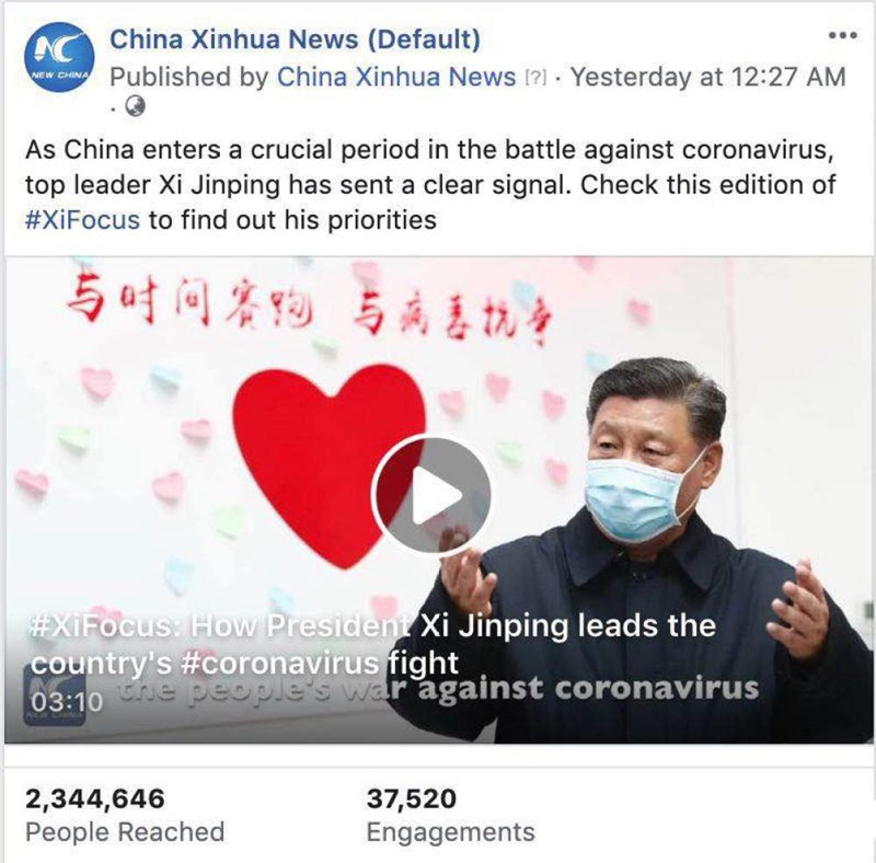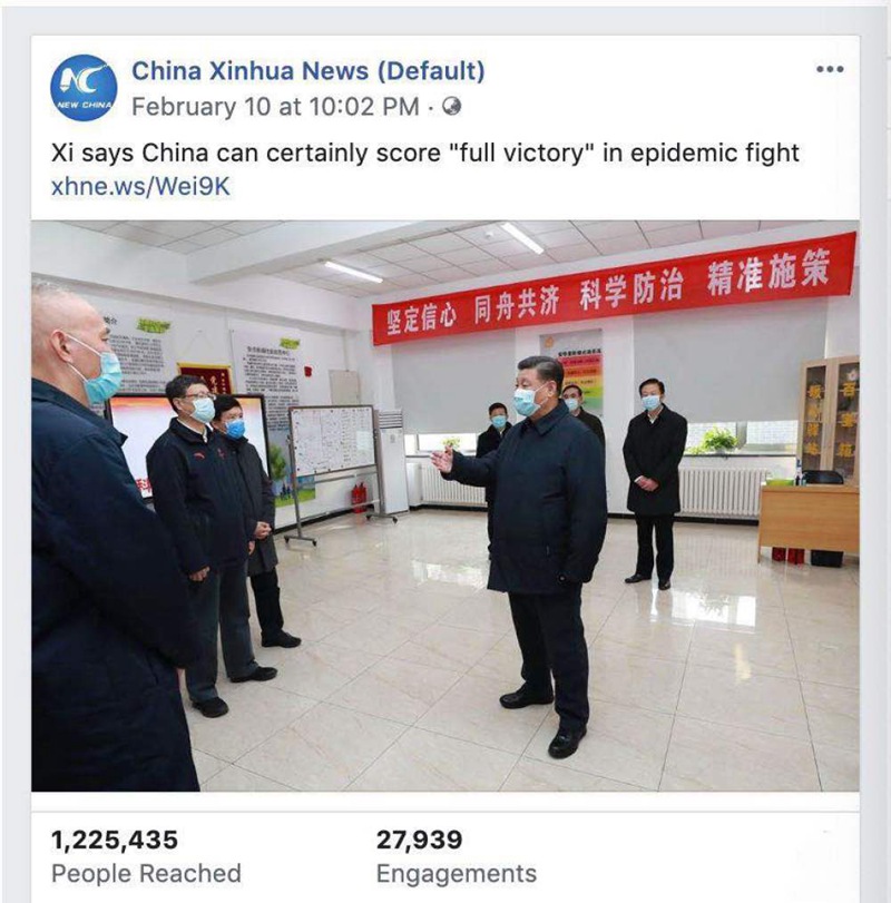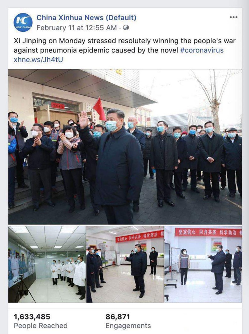 2月10日,習近平總書記在北京深入社區、醫院、疾控中心,瞭解基層疫情防控工作情況,並視頻連線湖北武漢抗擊新冠肺炎疫情前線。此次活動的文圖視頻報道,在社交媒體平台形成刷屏之效。