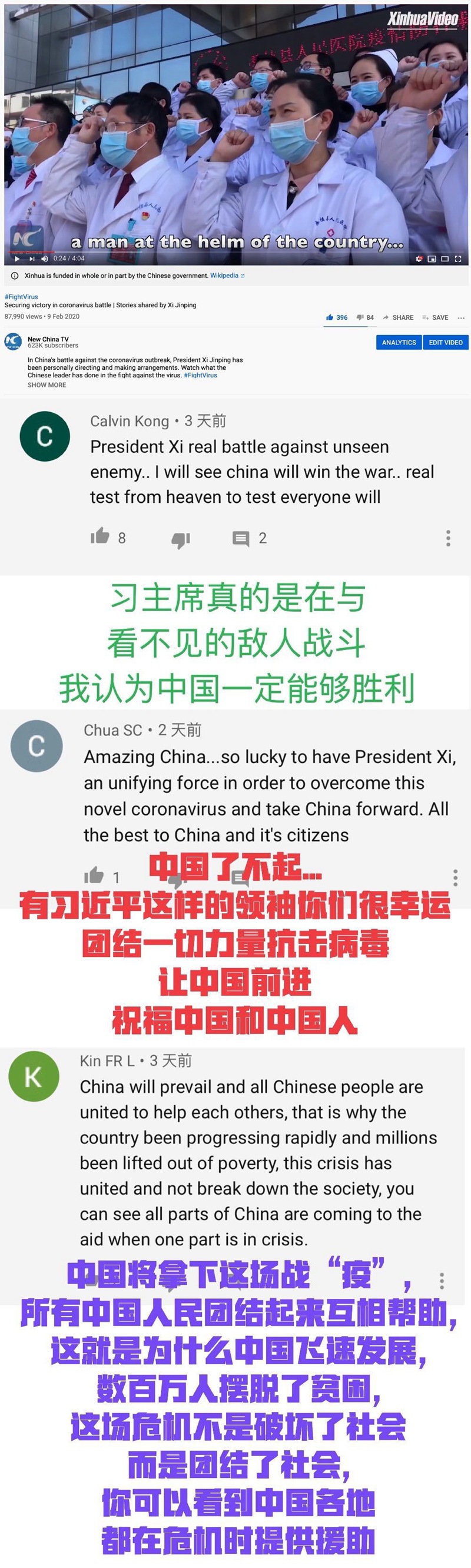 全球網友點贊習主席帶領中國人民奮力抗擊疫情