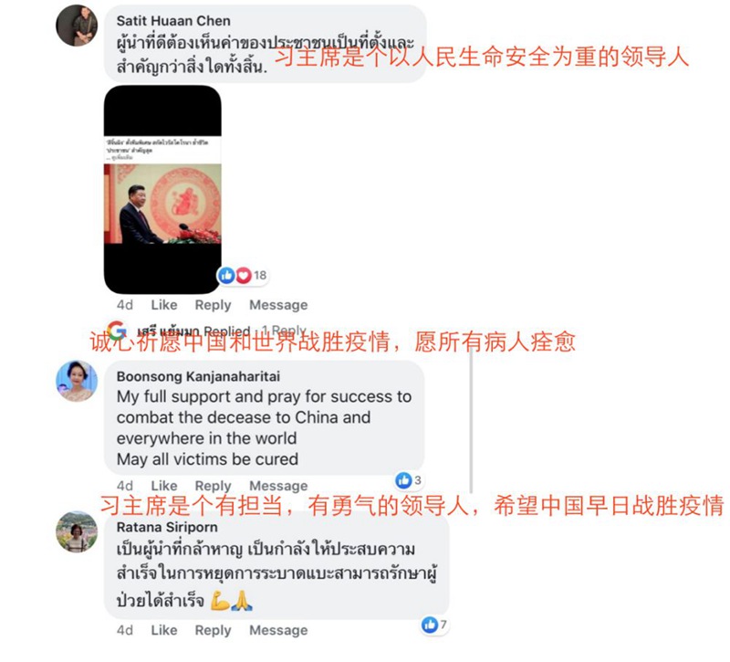 有泰國網友在新華社泰文社交媒體賬號下留言: